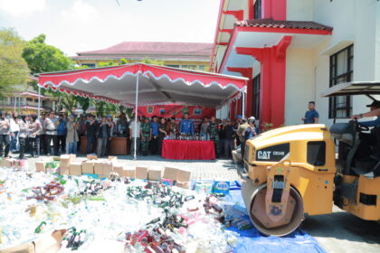 Polres Klaten bersama Pemerintah Kabupaten Klaten dan unsur Forkopimda memusnahkan ribuan botol minuman keras (miras) serta ratusan knalpot tidak sesuai spesifikasi teknis dalam operasi penyakit masya...
