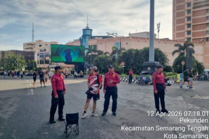 Polda Jateng, Kota Semarang | Suasana pagi di kawasan Lapangan Pancasila Simpang Lima, Kota Semarang, Minggu (12/4/2026), tampak semarak. Ribuan warga memanfaatkan momen Car Free Day (CFD) untuk berol...